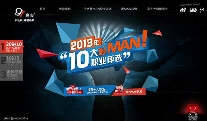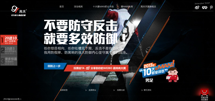 市場上唯一“專為男士高級定制”的個人護理品牌——高夫,在網(wǎng)絡打造“最MAN十大男性職業(yè)”事件,吸引消費者關注并積極參與到活動中,在網(wǎng)絡掀起最MAN職業(yè)的話題和熱潮。