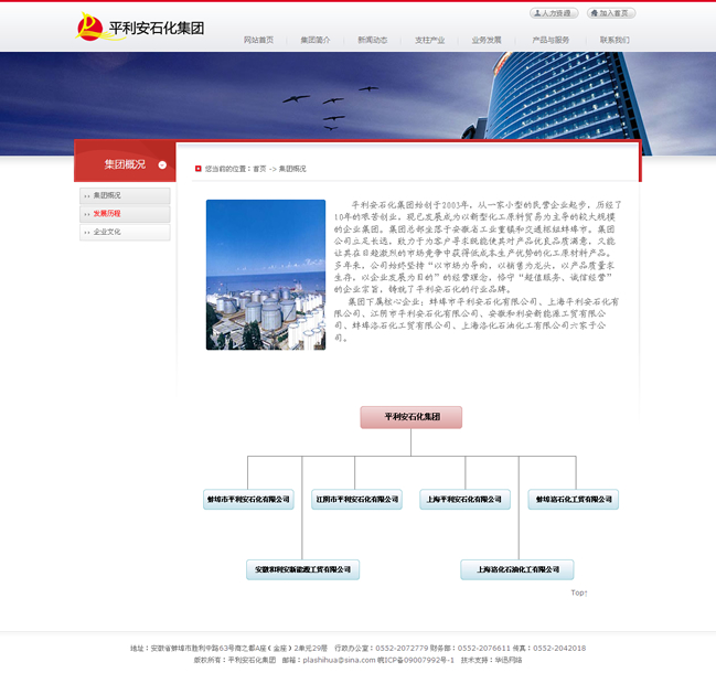 集團(tuán)下屬核心企業(yè):蚌埠市平利安石化有限公司、上海平利安石化有限公司、江陰市平利安石化有限公司、安徽和利安新能源工貿(mào)有限公司、蚌埠洛石化工貿(mào)有限公司、上海洛化石油化工有限公司六家子公司。