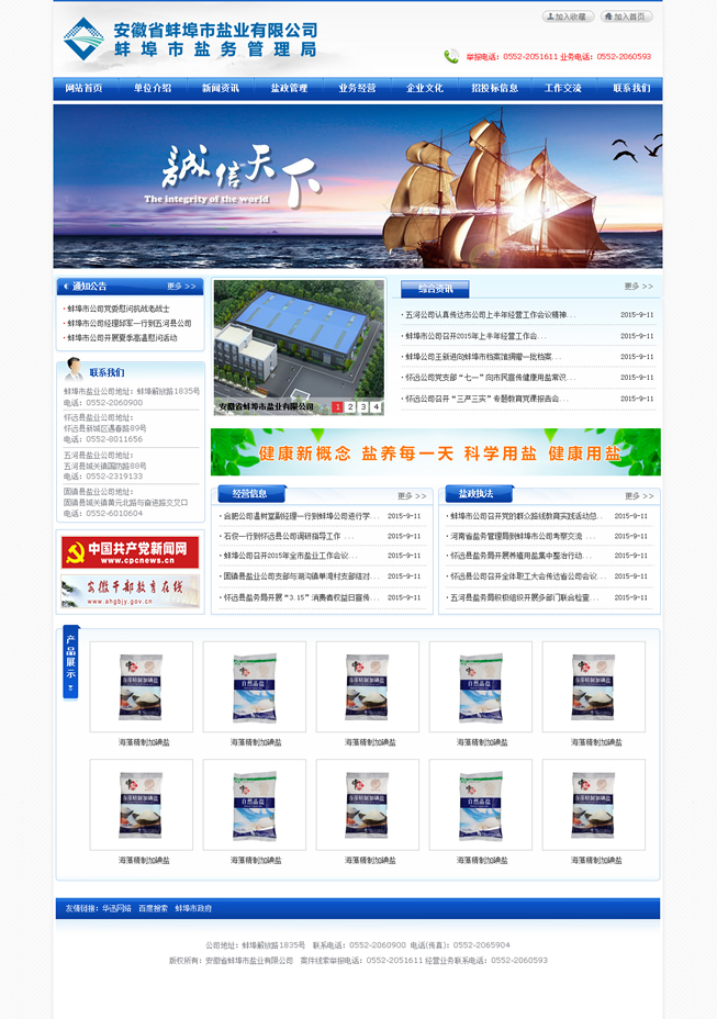 多年來(lái),蚌埠鹽業(yè)認(rèn)真貫徹落實(shí)國(guó)家《食鹽專營(yíng)辦法》、《食鹽加碘消除碘缺乏危害管理?xiàng)l例》,始終以食鹽市場(chǎng)安全穩(wěn)定為天職,忠實(shí)履職,恪盡職守。一方面對(duì)全市鹽業(yè)市場(chǎng)進(jìn)行鹽政監(jiān)管,嚴(yán)厲打擊鹽業(yè)違法犯罪,全力維護(hù)食鹽市場(chǎng)安全穩(wěn)定;另一方面負(fù)責(zé)組織開(kāi)展食鹽專營(yíng),致力為消費(fèi)者提供安全、優(yōu)質(zhì)、放心的加碘食鹽,確保全市371萬(wàn)人口的食鹽供應(yīng)。與此同時(shí),蚌埠鹽業(yè)主動(dòng)適應(yīng)市場(chǎng)需要,積極拓展非鹽經(jīng)營(yíng),在發(fā)展的道路上不斷深化改革,自主創(chuàng)新,產(chǎn)業(yè)結(jié)構(gòu)轉(zhuǎn)型邁出堅(jiān)實(shí)步伐,全區(qū)總資產(chǎn)已近8000萬(wàn)元,現(xiàn)有經(jīng)營(yíng)倉(cāng)儲(chǔ)面積約1.5萬(wàn)平米,在建倉(cāng)庫(kù)1萬(wàn)余平米。2014年實(shí)現(xiàn)銷售收入14762.69萬(wàn)元,其中食鹽銷售4967.40萬(wàn)元,非鹽銷售9795.20萬(wàn)元、實(shí)現(xiàn)利稅1124.52萬(wàn)元,經(jīng)濟(jì)社會(huì)效益居全省同行領(lǐng)先。先后榮獲全省鹽業(yè)系統(tǒng)先進(jìn)單位五連冠、安徽省勞動(dòng)保障誠(chéng)信示范企業(yè)、安徽省衛(wèi)生先進(jìn)單位、檔案管理考核安徽省一級(jí)單位、蚌埠市A級(jí)納稅信用單位、蚌埠市第十四屆文明單位等多項(xiàng)榮譽(yù)稱號(hào)。